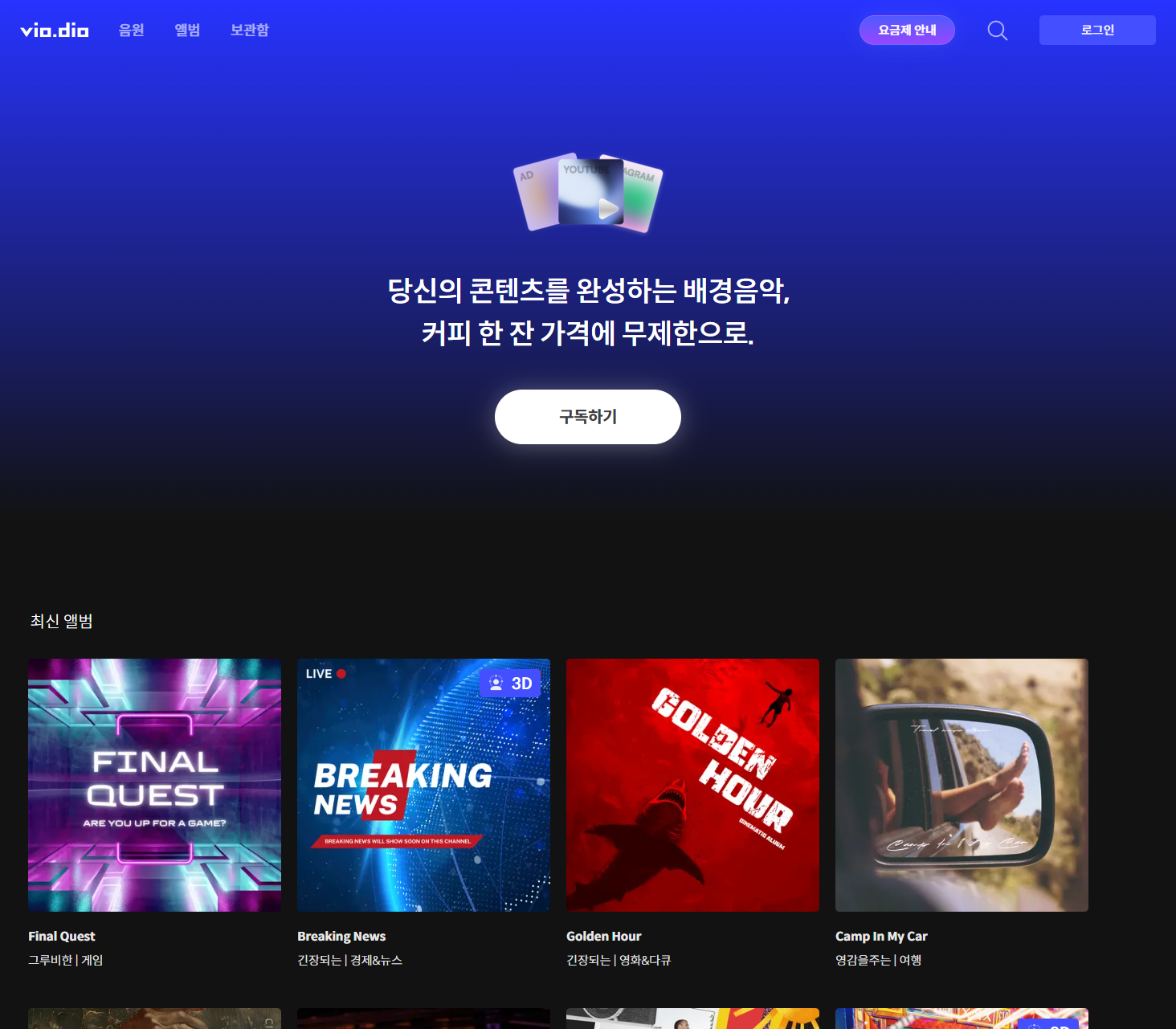 - 컨텐츠 제작자인 고객에게 저작권 걱정 없는 음원을 제공하는 기능을 개발하여 b2b 계약 수주에 기여